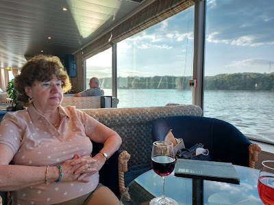 Sehr viel Zeit haben wir in der Panorama-Lounge verbracht - was kein Wunder war, denn sie war sehr gemütlich. Hier haben wir auf den Beginn von Landgängen und Ausflügen gewartet, haben Kaffee und Kuchen genossen. Wir haben Veranstaltungen besucht, wie z.B. den Willkommenscocktail, die serbische Volkstanzgruppe Talija, einen Frühschoppen gefeiert und den Kapitänsempfang zelebriert. Nach dem Abendessen haben wir hier den Tag bei kühlem Rosé und Rotwein ausklingen lassen. Die musikalische Untermalung bei Kaffee und Kuchen und Abends kam von Berni, der sehr gut gespielt hat.